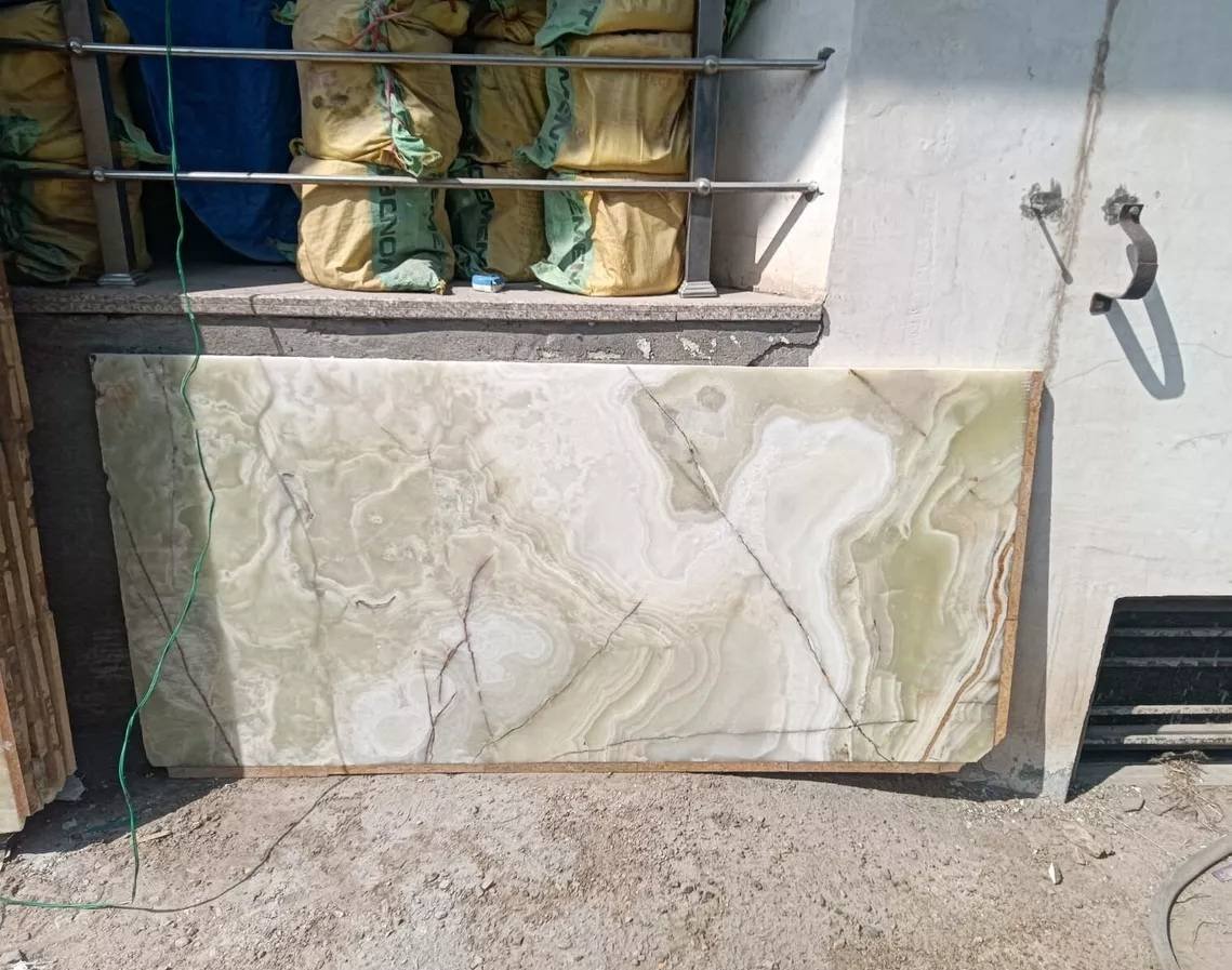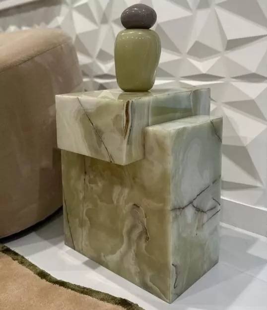 Green Onyx Marble Cube Table, Plinth Marble Living Room Table with Onyx Marble Stand
