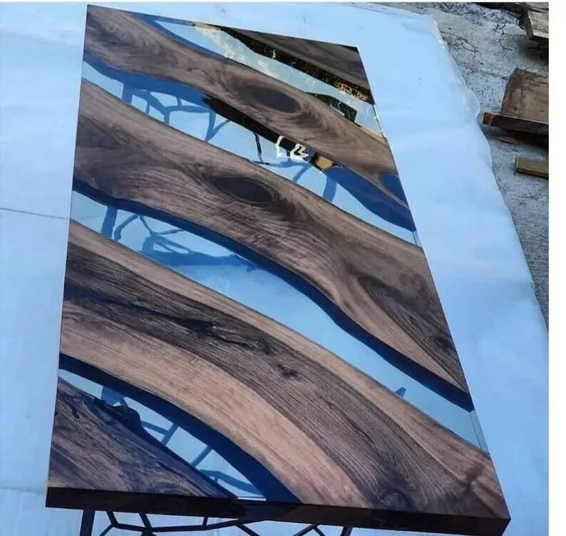 WOOD AND CLEAR EPOXY HANDMADE DINING, CENTER, COFFEE TABLE WITH LEGS